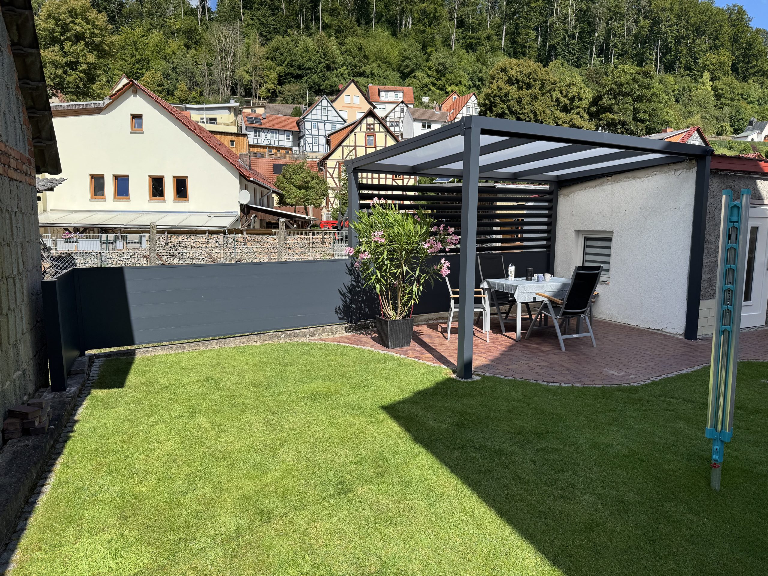 Unsere Terrassendächer bestehen aus hochwertigem Aluminium und Stahl sowie weiteren witterungsbeständigen Materialien. So garantieren wir maximale Stabilität, Langlebigkeit und zuverlässigen Schutz bei jedem Wetter.