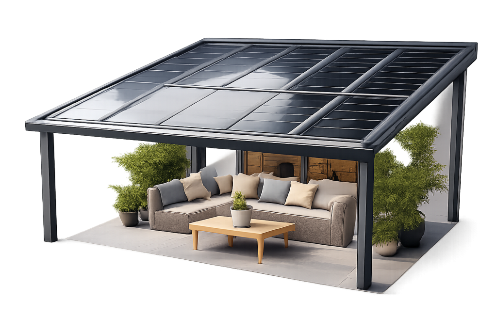 Unsere Solarterrassen verbinden Wetterschutz mit umweltfreundlicher Energiegewinnung.